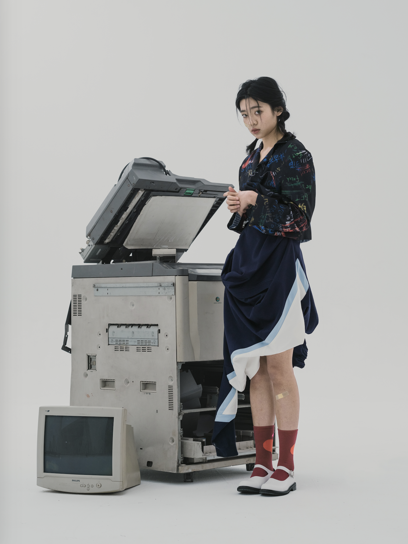 — “Being bullied in school during childhood, I would like to interpret the force of fear through distorted silhouettes and ripped knits.”